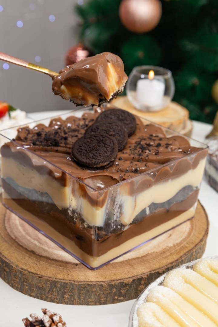 camadas de creme branco, creme amargo e muuuito biscoito Oreo pra completar o sabor perfeito.