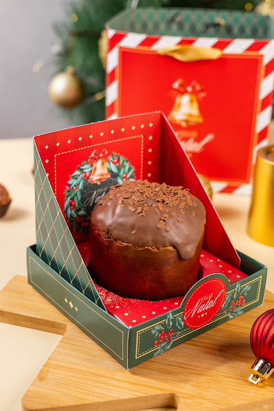 🎄✨ Mini Chocotone de Brigadeiro: macio, recheado e finalizado com chocolate + splits belgas. Aquele presente que ninguém resiste — lindo, delicioso e já vem com caixa e sacola. 💛 👉 Garanta o seu antes que acabe! Peso Aproximado 180gr