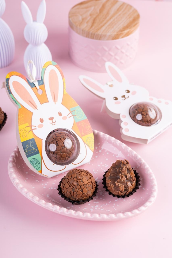 um singelo mimo de páscoa. Brigadeiro belga unitário em uma caixinha de páscoa